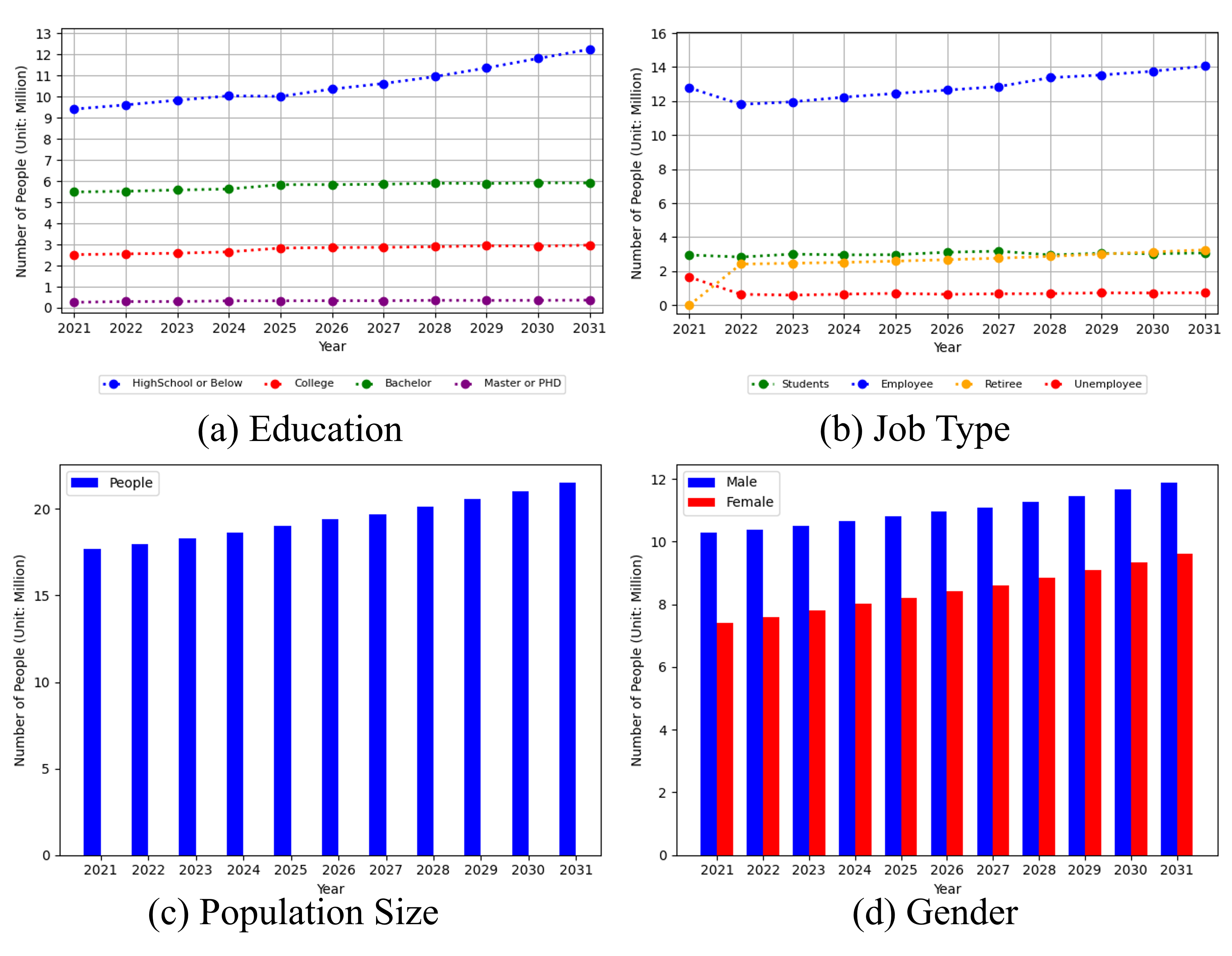 We applied SelfSim to Shenzhen, simulating how its urban system would evolve over time from 2021 to 2030. The scaling factor is 1:1000 (i.e., each agent in the simulation represents 1000 people in reality). The model is calibrated by comparing the observed and simulated home sale prices and population distributions between 2021 and 2023. The mean absolute percentage errors(MAPE) were 9.2% and 4.7%, respectively.