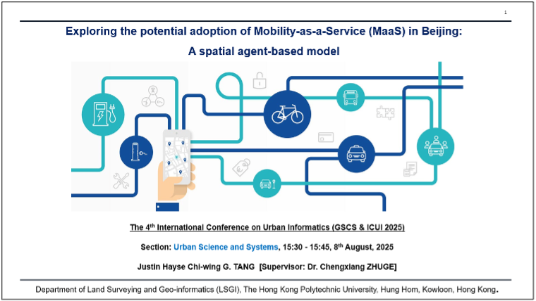We are pleased to announce that our research group members, Ying ZHANG and Justin Hayse Chiwing Tang G. TANG, from the SelfSim Research Group, presented their research work at the Global Smart Cities Summit (GSCS 2025) cum The 4th International Conference on Urban Informatics (ICUI 2025), hosted by The Hong Kong Polytechnic University, Hong Kong.