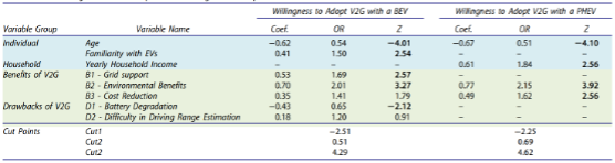 Empirical findings: Ordered logit models for respondents’ willingness to adopt V2G