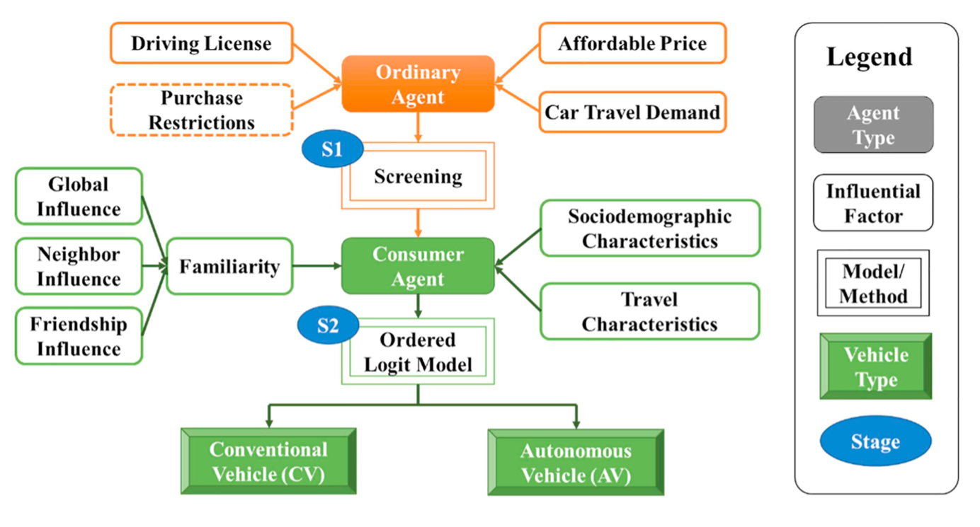 Framework of an agent-based autonomous vehicle (AV) diffusion model