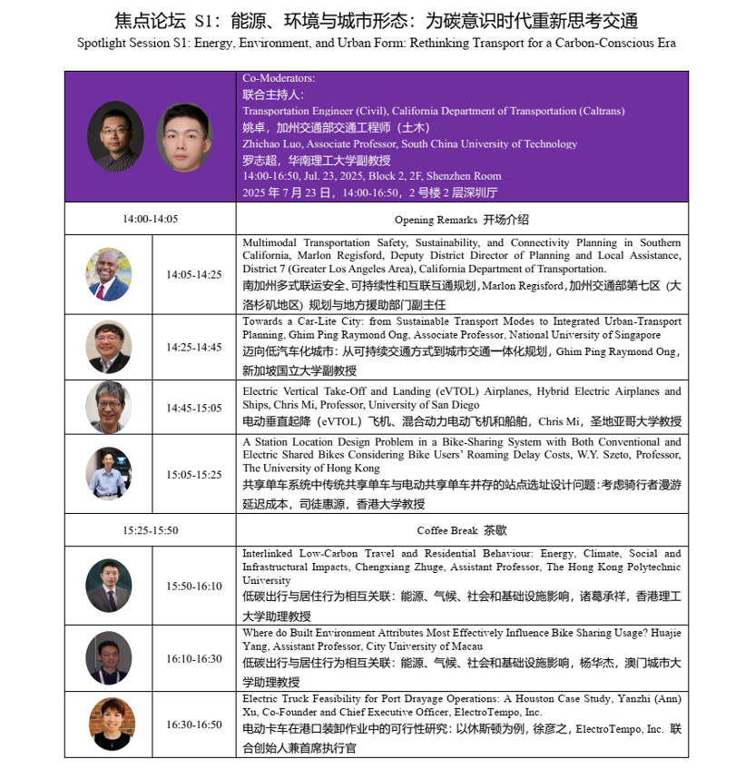 Dr. Chengxiang (Tony) Zhuge, PI of the SelfSim project, was invited to give a presentation on The 25th COTA International Conference of Transportation Professionals (CICTP 2025), which was held in Guangzhou, China from 22 to 25 July 2025. The presentation title was “Interlinked Low-Carbon Travel and Residential Behaviour: Energy, Climate, Social and Infrastructural Impacts”. In the presentation, Dr. Zhuge introduced two versions of SelfSim, namely, SelfSim-EV and SelfSim-Energy, and how to combine these two SelfSim versions to explore the interlinked technology adoption in the mobility and residential sectors.